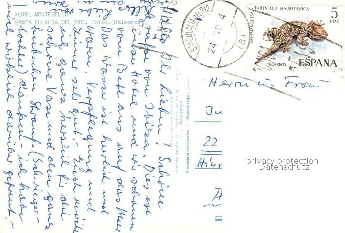 old postcard Santa Eulalia del Rio Fliegeraufnahme Hotel Montebello postalisch gelaufen Erhaltung siehe scans [KathaD81]