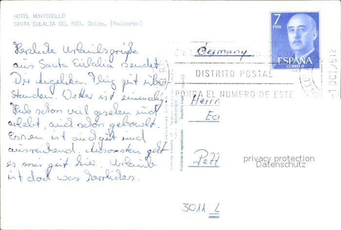 old postcard Santa Eulalia del Rio Hotel Montebello Fliegeraufnahme postalisch gelaufen Erhaltung siehe scans