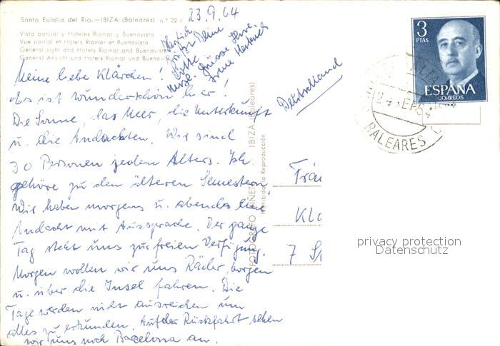 old postcard Santa Eulalia del Rio Hotel postalisch gelaufen Erhaltung siehe scans