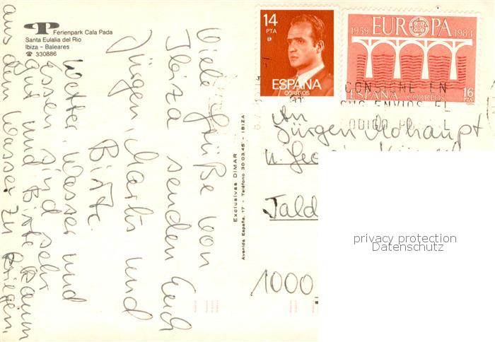 old postcard Santa Eulalia del Rio Ibiza ES Ferienpark Cala Pada Piscina postalisch gelaufen Erhaltung siehe scans [FriedD77]