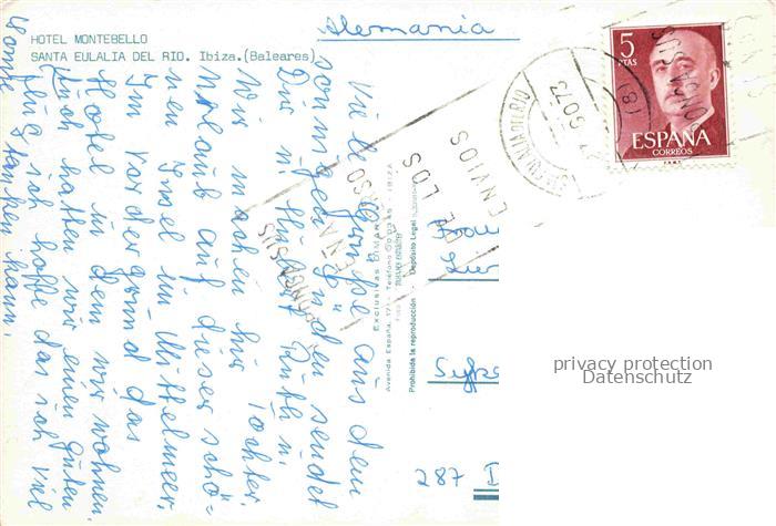 74039068 old postcard Santa Eulalia del Rio Ibiza ES Fliegeraufnahme Hotel Montebello postalisch gelaufen Erhaltung siehe scans [WerneD78] KatCode: 11510