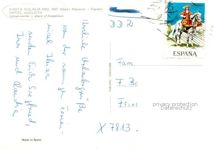old postcard Santa Eulalia del Rio Ibiza ES Hotel Augusta Pool postalisch gelaufen Erhaltung siehe scans [WerneD78]