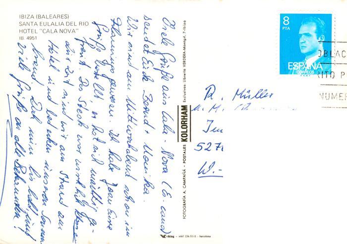 old postcard Santa Eulalia del Rio Ibiza ES Hotel Cala Nova Fliegeraufnahme postalisch gelaufen Erhaltung siehe scans [WerneD78]