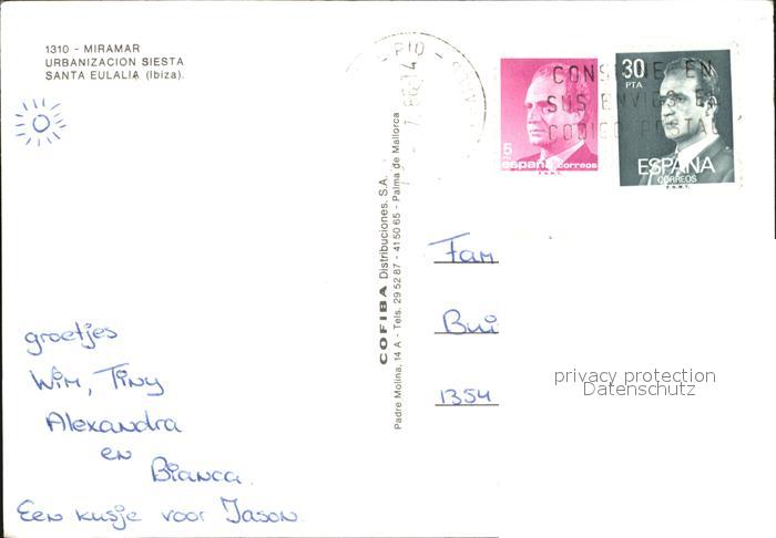 old postcard Santa Eulalia del Rio Miramar postalisch gelaufen Erhaltung siehe scans