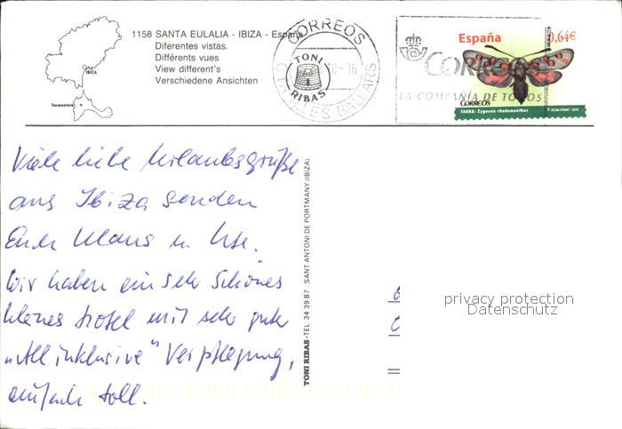 old postcard Santa Eulalia del Rio Promenade Brunnen Burg postalisch gelaufen Erhaltung siehe scans