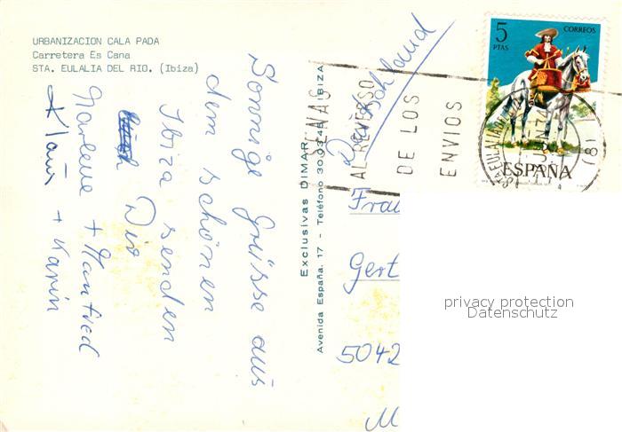 old postcard Santa Eulalia del Rio Urbanización Cala Pada vista aérea postalisch gelaufen Erhaltung siehe scans [FriedD77]