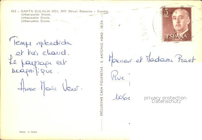 old postcard Santa Eulalia del Rio Urbanization Siesta postalisch gelaufen Erhaltung siehe scans