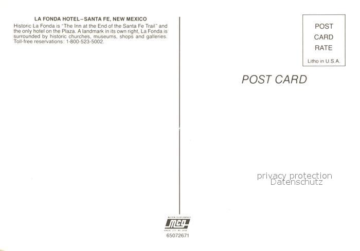 73173903 Santa Fe New Mexico La Fonda Hotel postalisch nicht gelaufen Erhaltung siehe scans [NatalD47] KatCode: 14140330000000