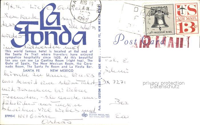 72415868 old postcard Santa Fe New Mexico La Fonda Hotel postalisch gelaufen Erhaltung siehe scans KatCode: 14140330000000