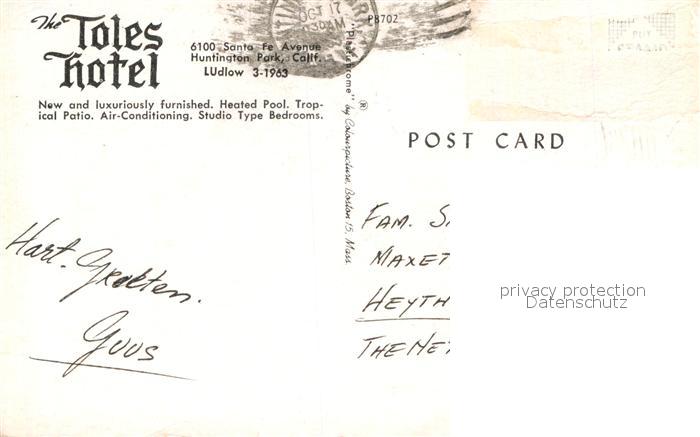 12928675 Santa Fe Springs Toles Hotel postalisch nicht gelaufen Erhaltung siehe scans [PaolaD17] KatCode: 14140050000000