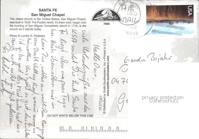 72435756 old postcard Santa Fe Texas San Miguel Chapel postalisch gelaufen Erhaltung siehe scans KatCode: 14140460000000