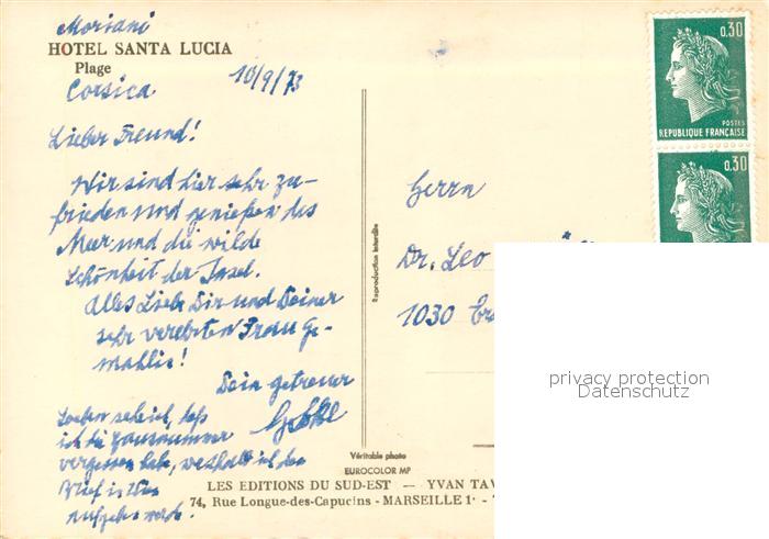 13657209 Santa-Lucia-di-Moriani Hotel postalisch nicht gelaufen Erhaltung siehe scans [FriedD77] Frie Katcode 1117002B22B307