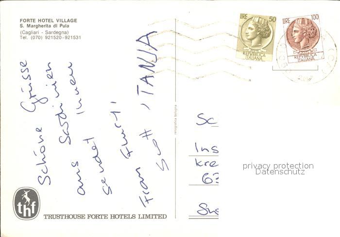 old postcard Santa Margherita di Pula Forte Hotel Village postalisch gelaufen Erhaltung siehe scans