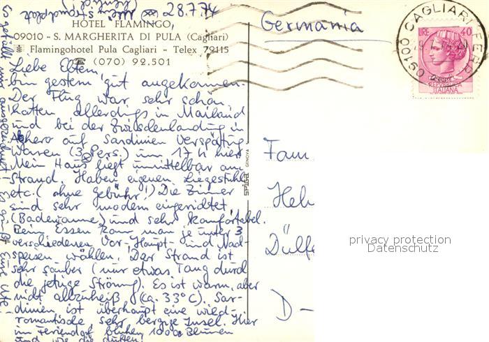 old postcard Santa Margherita di Pula Hotel Flamingo Spiaggia veduta aerea postalisch gelaufen Erhaltung siehe scans [FriedD77]