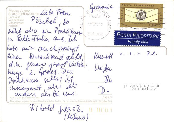 old postcard Santa Margherita Ligure Fliegeraufnahme postalisch gelaufen Erhaltung siehe scans