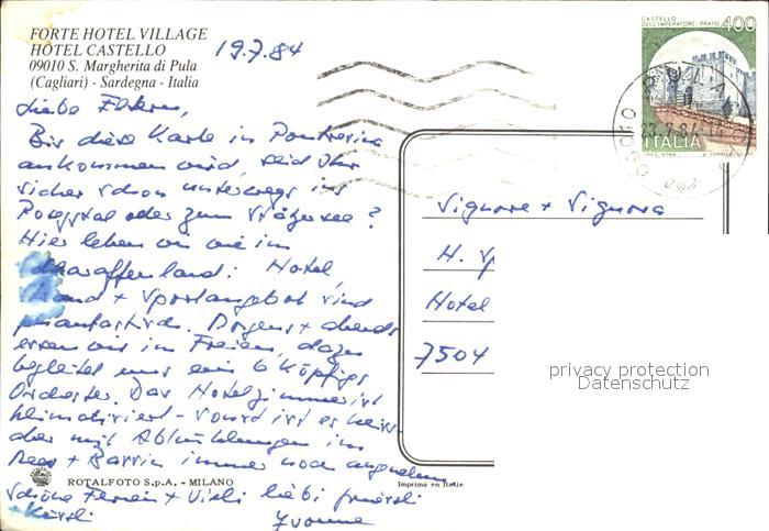 old postcard Santa Margherita Ligure Forte Hotel Village Hotel Castello Windsurfer postalisch gelaufen Erhaltung siehe scans
