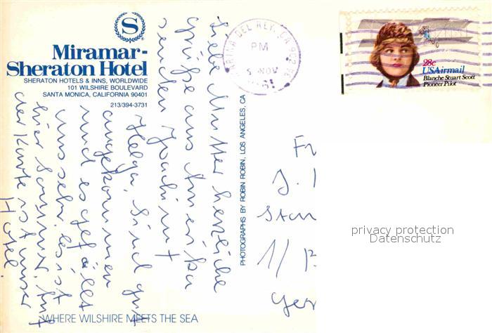 72858065 old postcard Santa Monica Fliegeraufnahme Miramar Sheraton Hotel postalisch gelaufen Erhaltung siehe scans [AndreD76] KatCode: 14140050000000