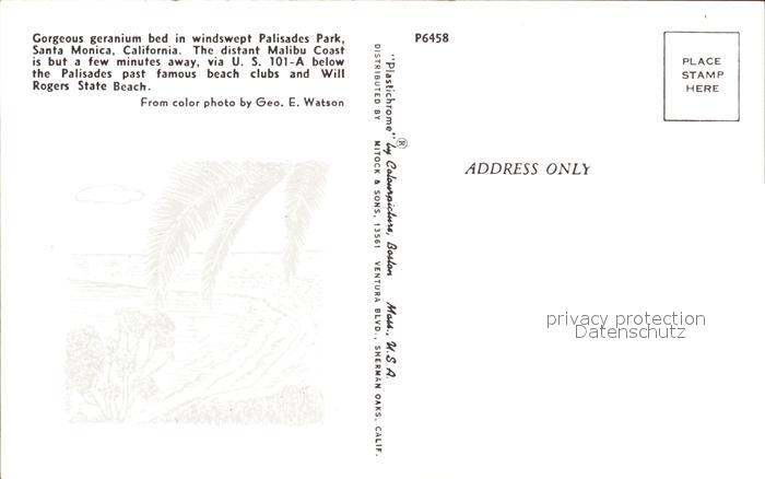 72461493 Santa Monica Gorgeous geranium bed Palisades Park postalisch nicht gelaufen Erhaltung siehe scans KatCode: 14140050000000