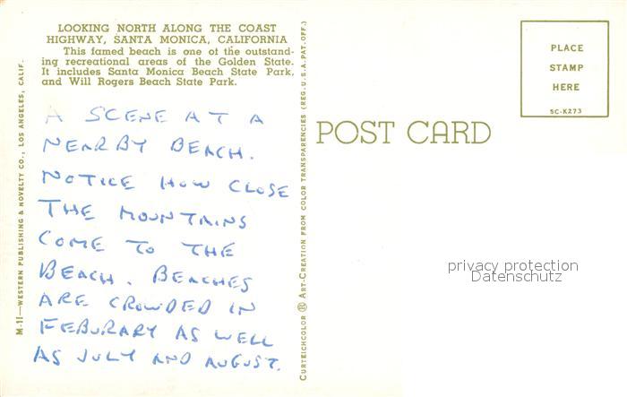 73012093 Santa Monica Highway Strand postalisch nicht gelaufen Erhaltung siehe scans [KathaD81] KatCode: 14140050000000