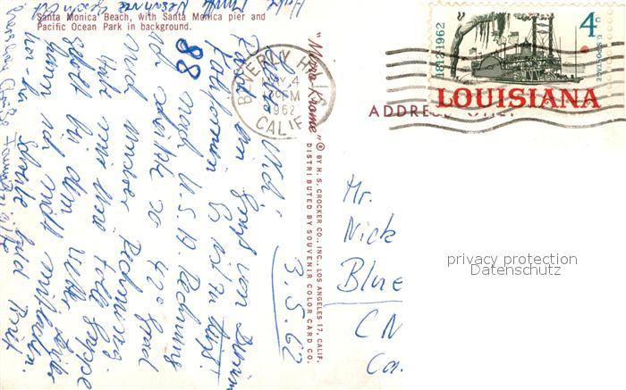 73127828 old postcard Santa Monica Strand Park postalisch gelaufen Erhaltung siehe scans [KathaD81] KatCode: 14140050000000