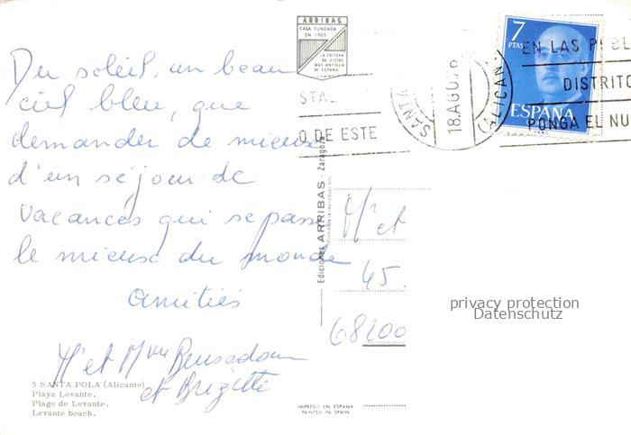 74035110 old postcard Santa Pola Alicante ES Playa Levante postalisch gelaufen Erhaltung siehe scans [FriedD77] KatCode: 11510