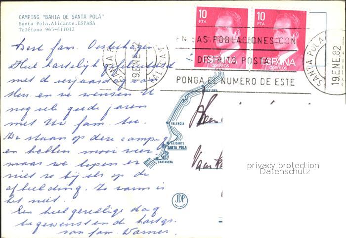 old postcard Santa Pola Camping Bahia de Santa Pola postalisch gelaufen Erhaltung siehe scans