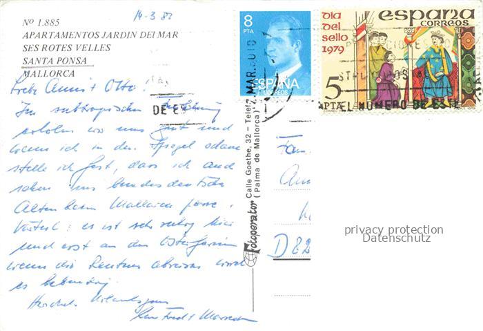 74156165 old postcard Santa Ponsa Calvia Mallorca ES Apartamentos Jardin del Mar Piscina postalisch gelaufen Erhaltung siehe scans [FriedD77] KatCode: 11510