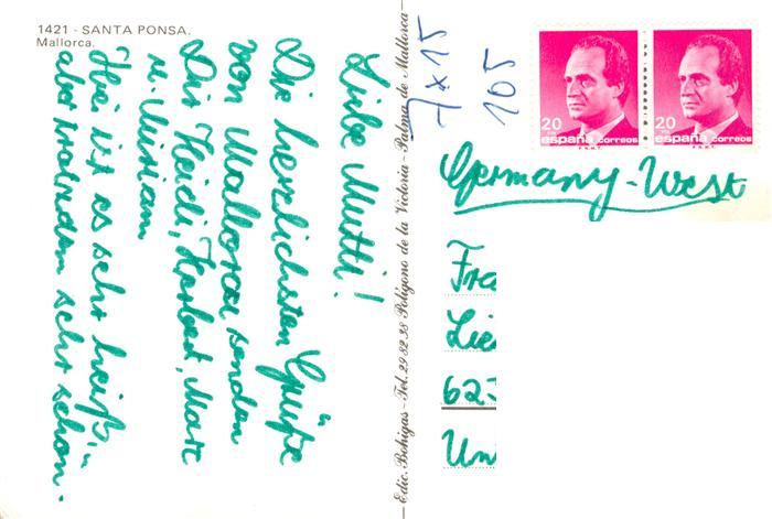 old postcard Santa Ponsa Mallorca ES Fliegeraufnahme postalisch gelaufen Erhaltung siehe scans [WerneD78]
