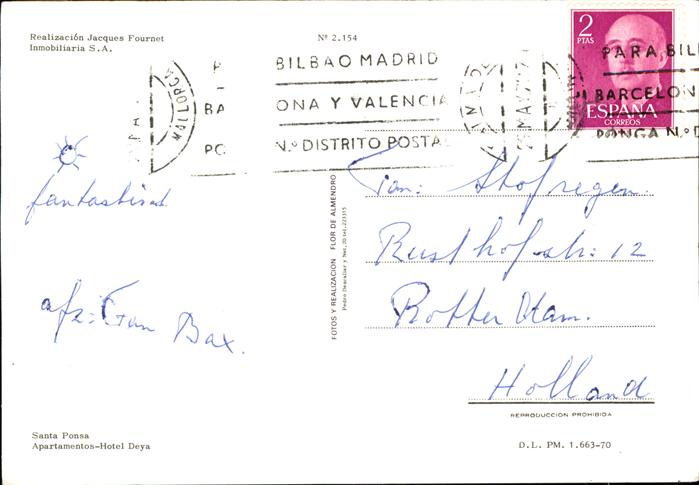 old postcard Santa Ponsa Mallorca Islas Baleares — postalisch gelaufen Erhaltung siehe scans