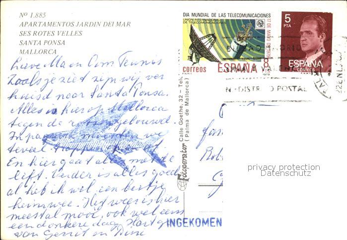 old postcard Santa Ponsa Mallorca Islas Baleares Apartamentos Jardin dei Mar postalisch gelaufen Erhaltung siehe scans