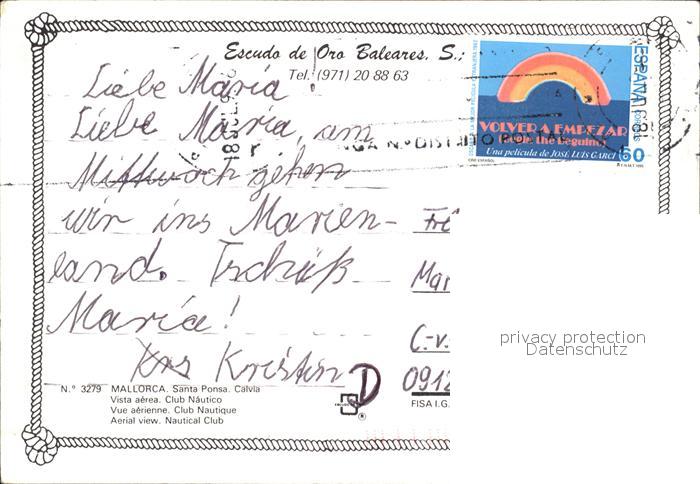 old postcard Santa Ponsa Mallorca Islas Baleares Club Nautico Hafen Luftbild postalisch gelaufen Erhaltung siehe scans