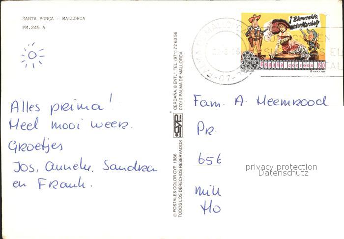 old postcard Santa Ponsa Mallorca Islas Baleares Fliegeraufnahme postalisch gelaufen Erhaltung siehe scans