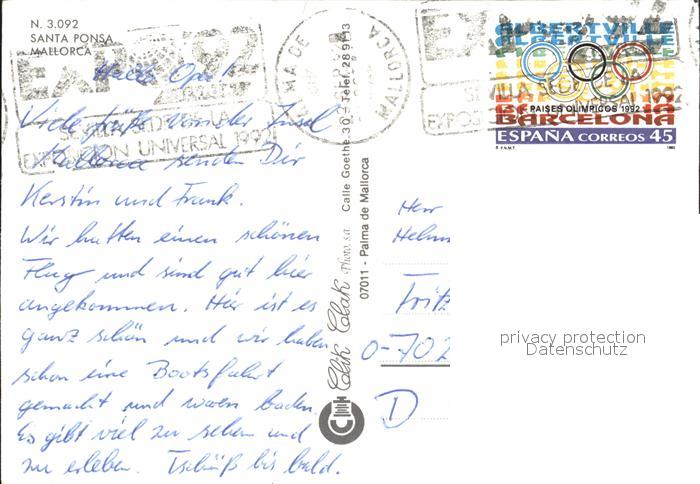 old postcard Santa Ponsa Mallorca Islas Baleares Fliegeraufnahme Inselkarte postalisch gelaufen Erhaltung siehe scans