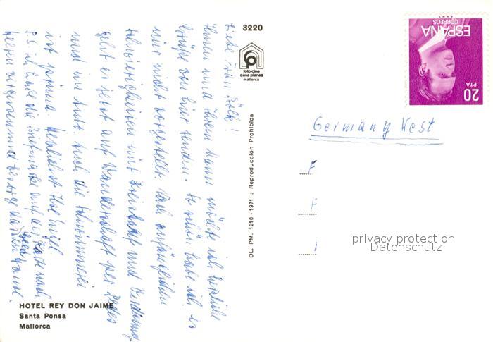 Santa Ponsa Mallorca Islas Baleares Hotel Rey Don Jaime Pool postalisch nicht gelaufen Erhaltung siehe scans [LiesaD40]