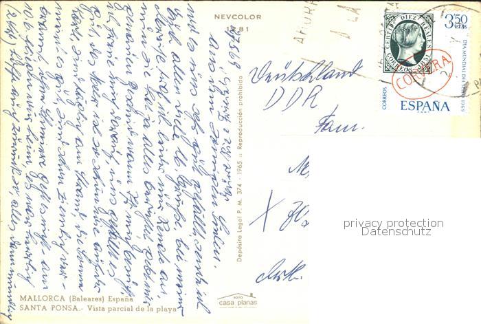 old postcard Santa Ponsa Mallorca Islas Baleares Vista parcial de la playa Strand postalisch gelaufen Erhaltung siehe scans