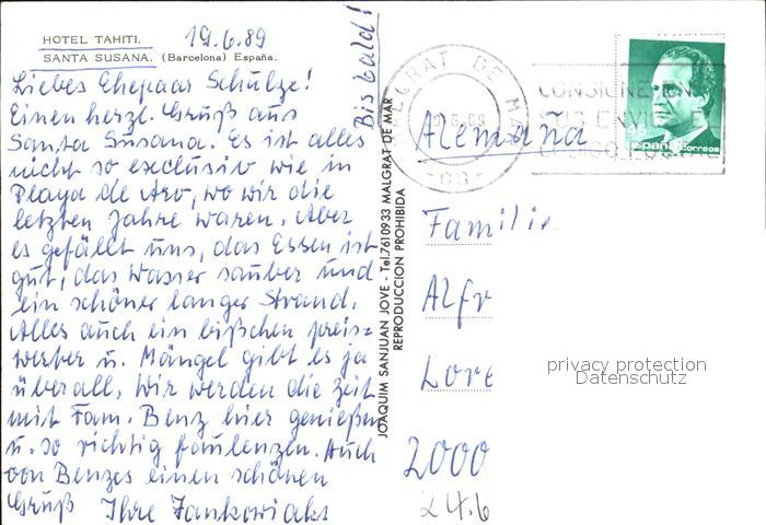 old postcard Santa Susana Hotel Tahiti Strand Tretboot postalisch gelaufen Erhaltung siehe scans