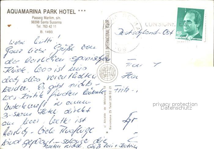 old postcard Santa Susanna Aquamarina Park Hotel Swimming Pool postalisch gelaufen Erhaltung siehe scans
