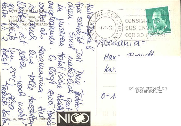 old postcard Santa Susanna Hotel Indalo Park postalisch gelaufen Erhaltung siehe scans