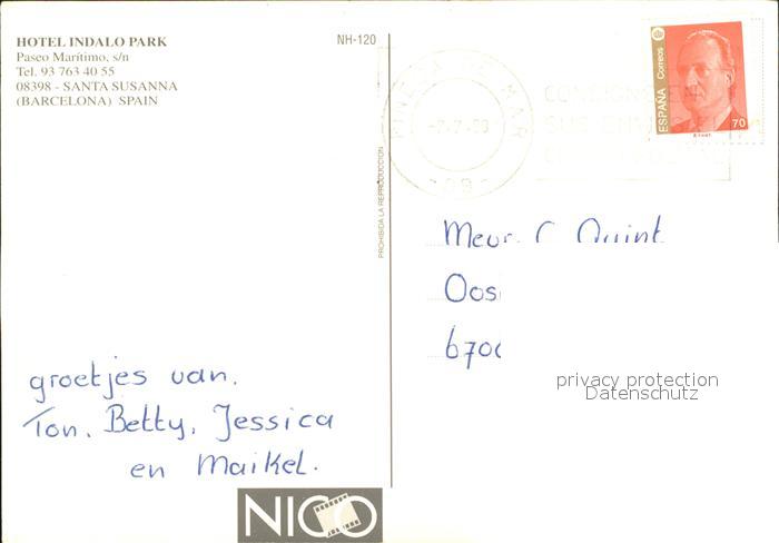 old postcard Santa Susanna Hotel Indalo Park postalisch gelaufen Erhaltung siehe scans