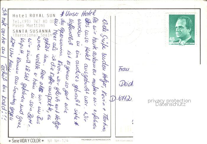 old postcard Santa Susanna Hotel Royal Sun Restaurant Strand postalisch gelaufen Erhaltung siehe scans