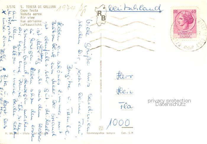 old postcard Santa Teresa Gallura Fliegeraufnahme postalisch gelaufen Erhaltung siehe scans [WerneD78]