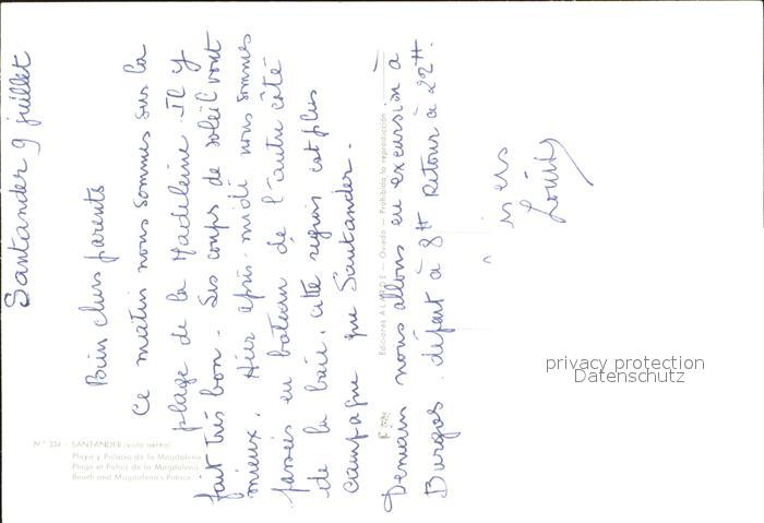 Santander Playa y Palaco de la Magdalena Vista aerea postalisch nicht gelaufen Erhaltung siehe scans