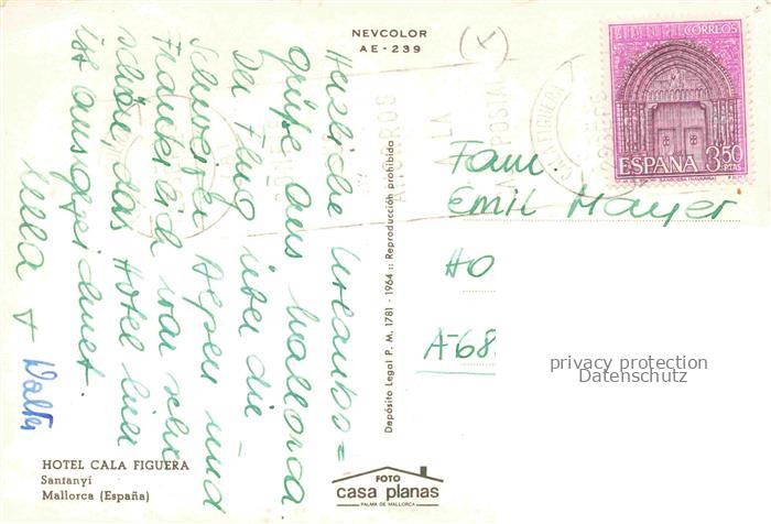 74097614 old postcard Santany Santanyi Mallorca ES Hotel Cala Figuera Fliegeraufnahme postalisch gelaufen Erhaltung siehe scans [WerneD78] KatCode: 11510