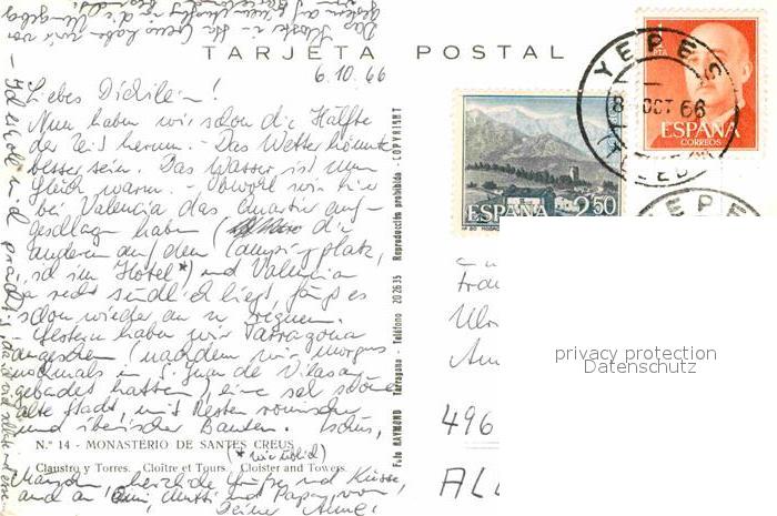 12825061 carte postale Santes Monasterio postalisch gelaufen Erhaltung siehe scans [LiesaD40] KatCode: 11170059559553