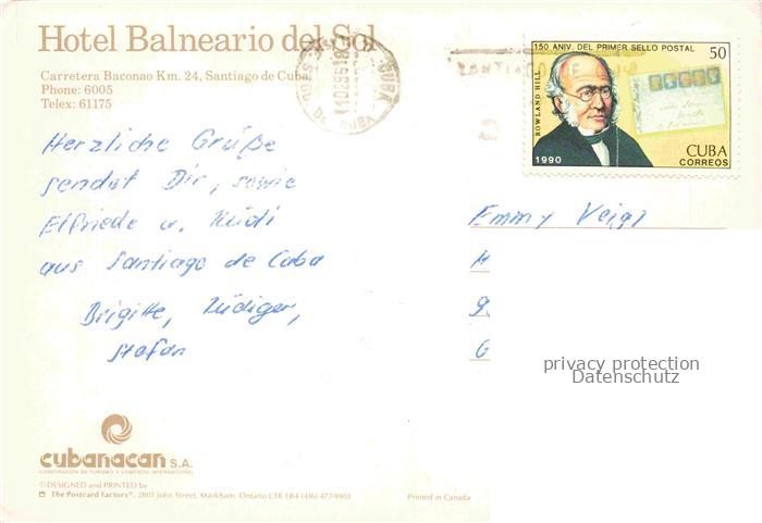 74005705 old postcard Santiago de Cuba Hotel Balneario del Sol Pool park postalisch gelaufen Erhaltung siehe scans [WerneD78] KatCode: 16160