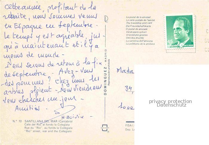 74036480 old postcard Santillana del Mar SANTANDER Cantabria ES Calle del Rio al fondo la Colegiata postalisch gelaufen Erhaltung siehe scans [FriedD77] KatCode: 11510