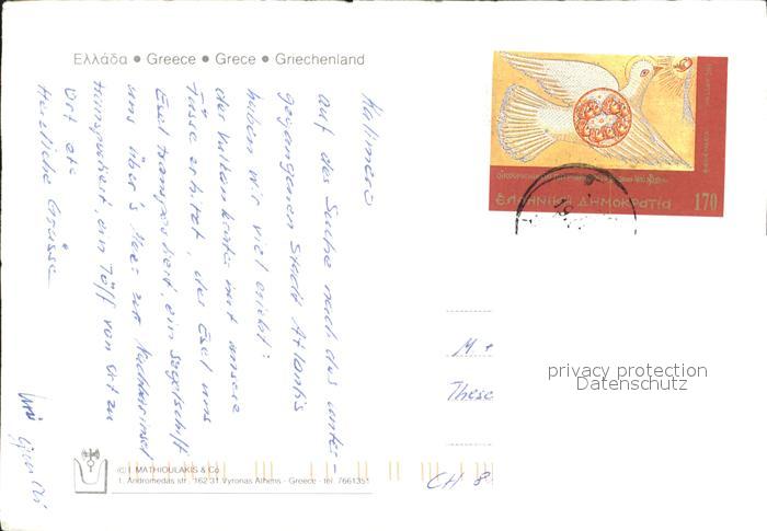 old postcard Santorin aegaeis Fira postalisch gelaufen Erhaltung siehe scans