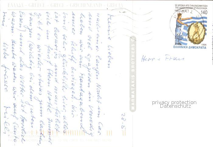 old postcard Santorin aegaeis postalisch gelaufen Erhaltung siehe scans [AndreD76 kt121box]