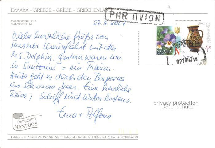 old postcard Santorin Thira Thera Panorama postalisch gelaufen Erhaltung siehe scans