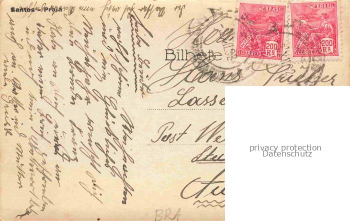 74010765 old postcard Santos Sao Paulo Brazil Praia Kuestenpanorama Strand postalisch gelaufen Fliegeraufnahme Erhaltung siehe scans [FriedD77] KatCode: 17040